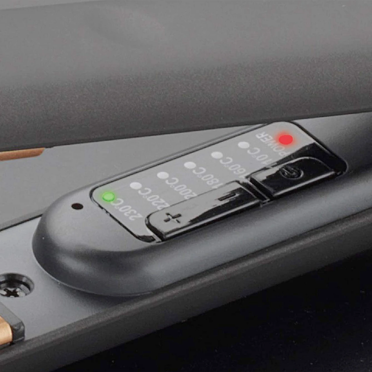 Il dispose de plaques en céramique enrichies d’huile de macadamia, d’huile d’argan et de kératine.