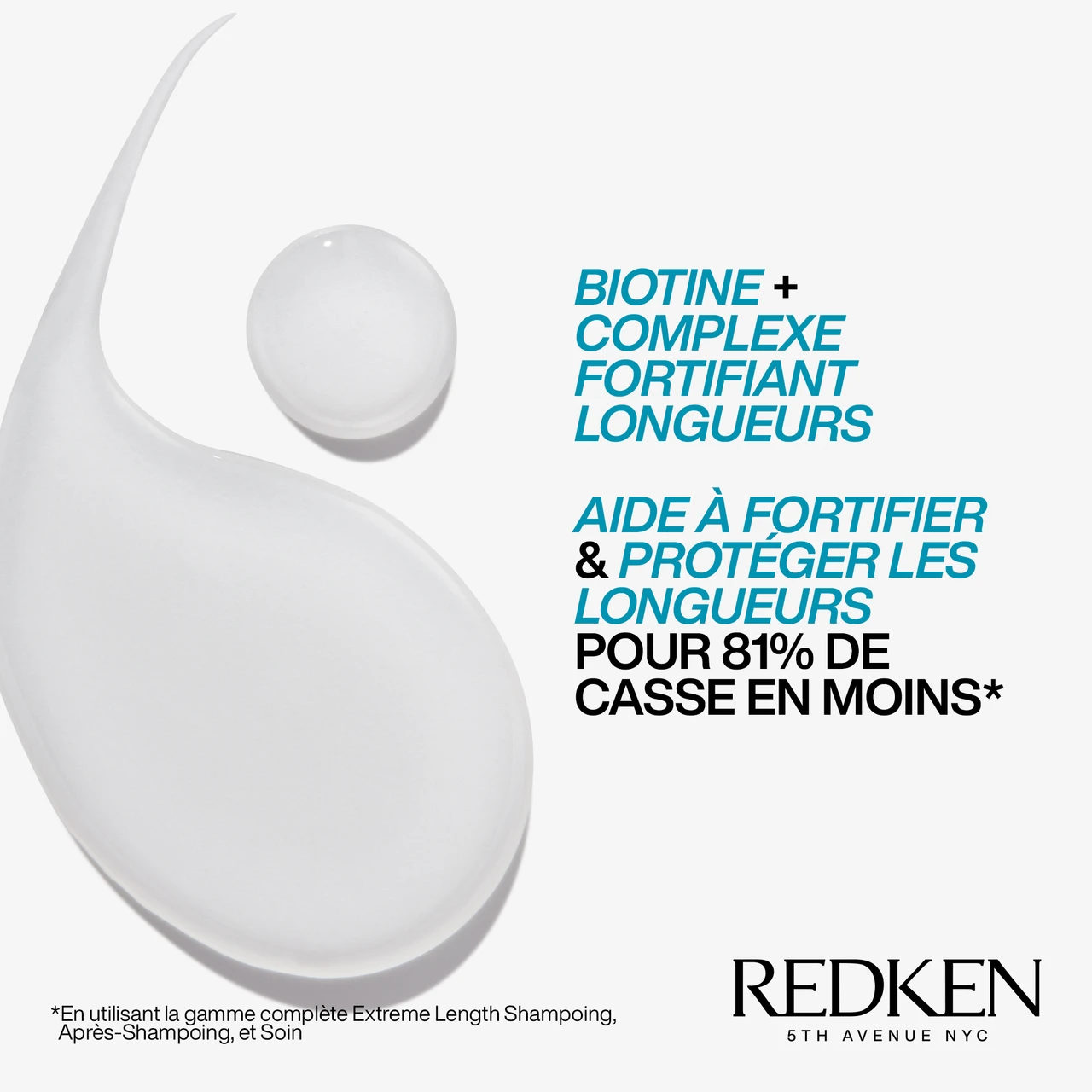 En plus de nettoyer en profondeur et en douceur, le Shampooing Extreme Length Redken contribue au maintien des cheveux en bonne santé sur une longue durée, peu importe leur nature.